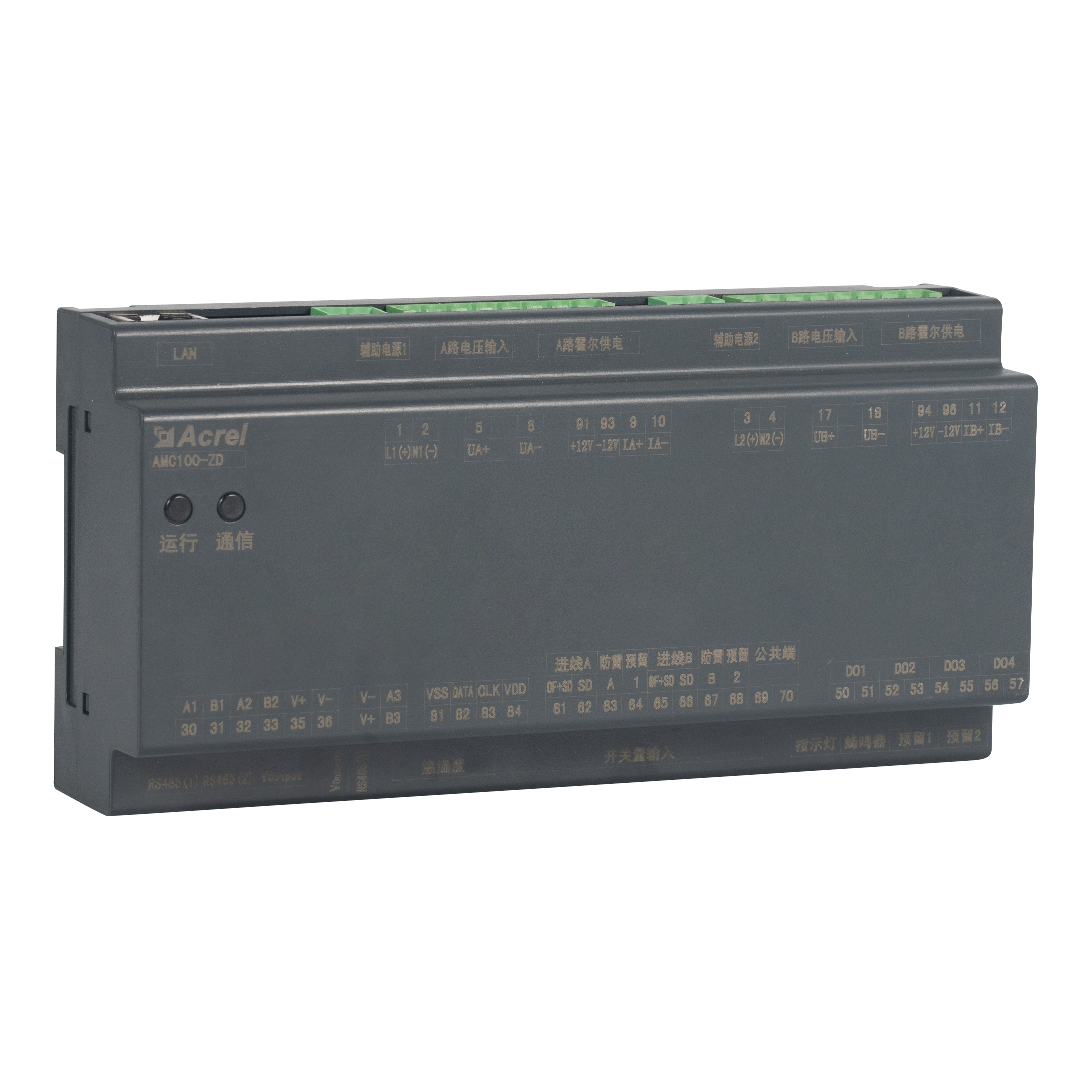 AMC100-ZD es la unidad de monitoreo de distribución de energía de precisión de CC de riel DIN de Acrel diseñada para racks de servidores de centros de datos. Realiza un seguimiento simultáneo de los parámetros eléctricos completos de alimentaciones trifásicas duales A B, 192 circuitos de salida, 8 puntos de estado DI/4 DO, 2 canales de fuga, 1 sensor de temperatura y humedad y 63 armónicos. Tres puertos RS485 Modbus-RTU permiten una integración perfecta de BMS/DCIM. Carcasa compacta de 180 mm, precisión de ±0,5 %, umbrales de alarma por canal y advertencias luminosas y sonoras instantáneas que reducen el desperdicio de energía y el tiempo de inactividad, lo que lo convierte en el corazón escalable de las soluciones de monitoreo de PDU o bus de CC ecológicas para centros de datos.