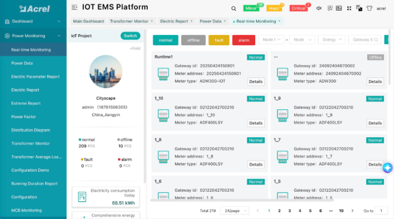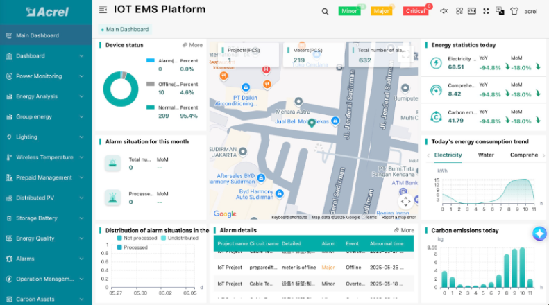 Para permitir la operación remota y el monitoreo inteligente, Acrel implementó una solución integrada que combina el medidor de energía ADW300-4G con una plataforma IoT, proporcionando medición en tiempo real, alertas de fallas y control centralizado. La inversión total del proyecto es de aproximadamente US$200.000.